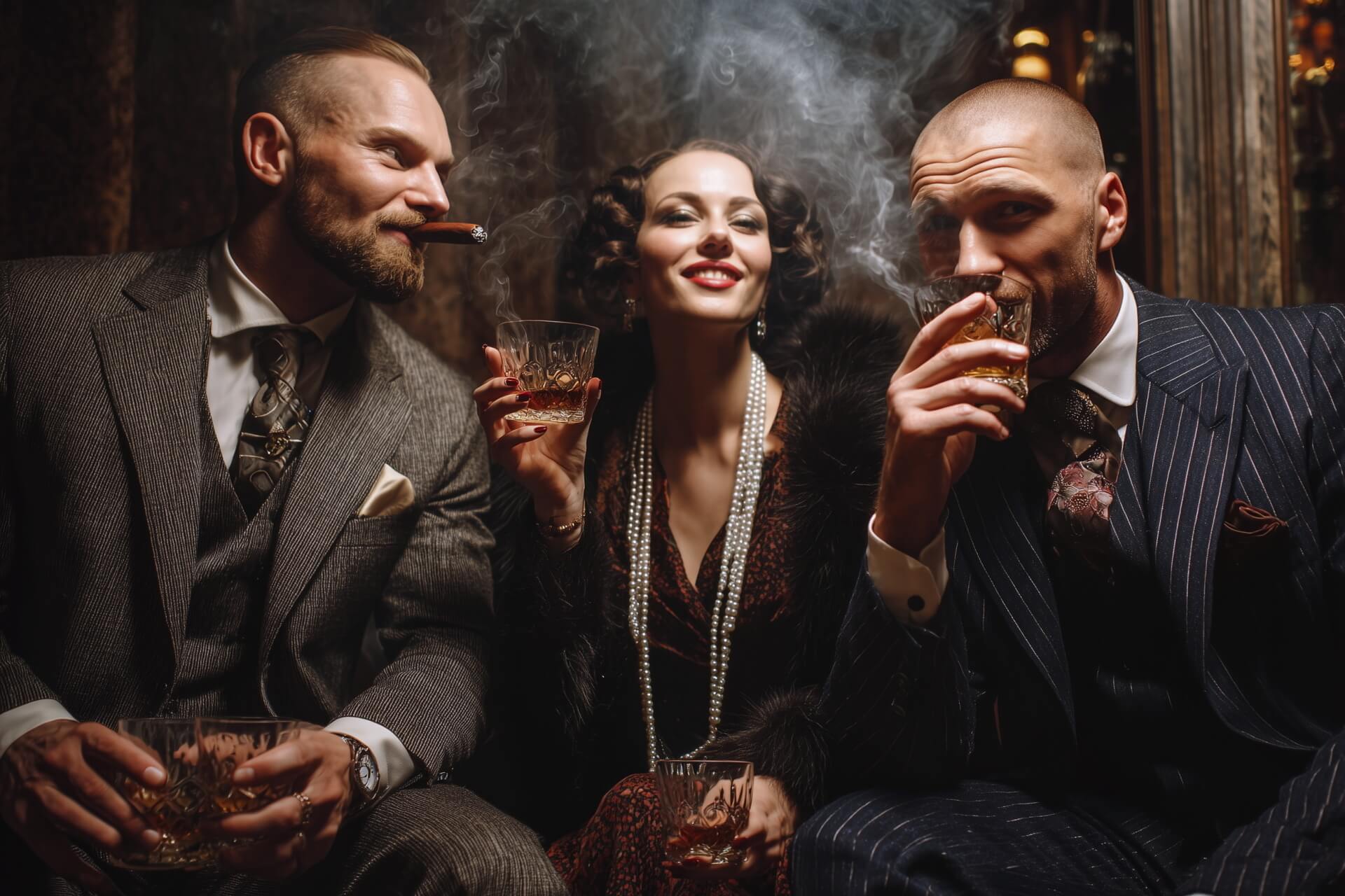 Гости становятся членами мафиозных кланов, у каждого — своя легенда, стиль и характер. За столами — переговоры, сделки и острые интерактивы, где важно не только удачное слово, но и умение держать лицо. Атмосферу усиливают актёры в образах, живые джазовые импровизации и визуальные детали — от сигарных боксов до секретных «паролей».